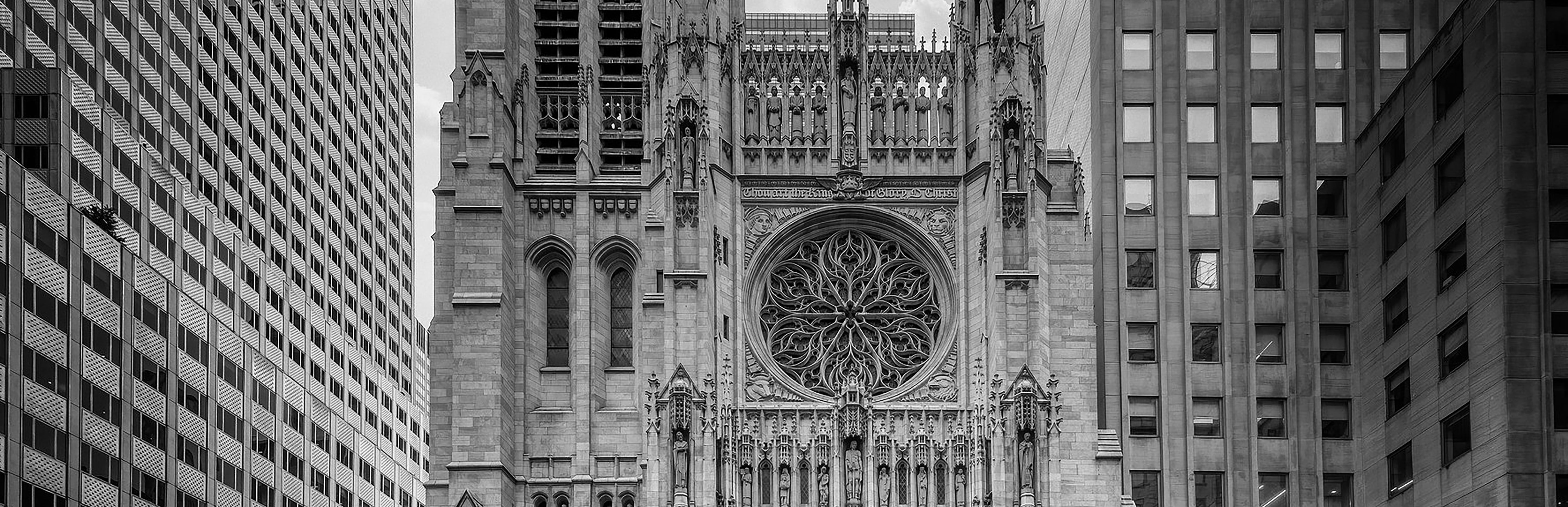 Adorn your festive decor with the architectural splendour of our all-gold, flat design ornament, inspired by the Rose Window of Saint Thomas Church Fifth Avenue. This intricate piece delicately captures the elaborate tracery and symmetrical beauty of the famed window, an iconic element of this historic New York City landmark.